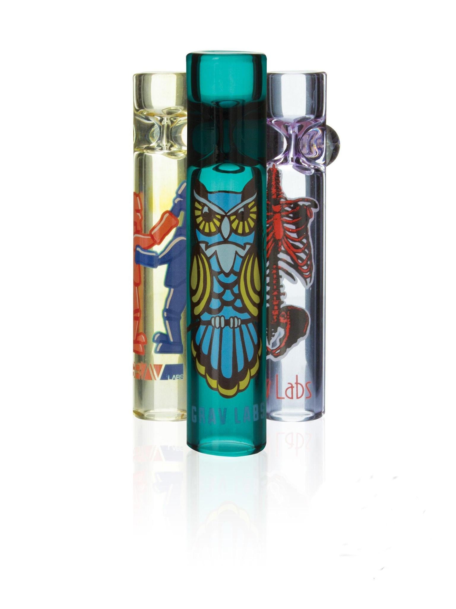 Stand out from the crowd with a 10 pack of 16mm GRAV® Whimsical Tasters. Not only do these Tasters have an assortment of colorful glass and attention-grabbing designs, they also have the largest capacity of any Taster at GRAV. There's a generous bowl at one end and a mouthpiece at the other, as well as a marble roll stop to keep the piece in place when you put it down.