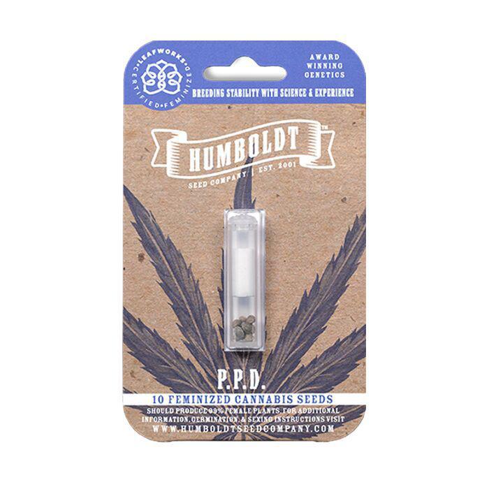 P.P.D (formerly known as Purple Panty Dropper) is Humboldt Seed Company’s original strain. These seeds produce big plants with uniform growth and great yields. These purple buds are moderately dense, with a sweet, floral, almost concord grape-like scent and aphrodisiac smoke. Of course, panties must be dropped consensually.