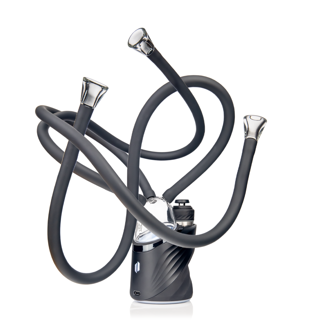 Turn your Puffco Peak into the ultimate party accessory with the MJ Arsenal Medusa Top. This split top allows for three hoses to connect to your favorite glass pieces, creating a hookah-style experience for group sessions. Use it directly with the included glass mouthpieces or connect the hoses to your preferred glass pieces for customized hits. Compatible with all Puffco Peaks, it includes 1 x 10mm and 1 x 14mm connection, plus 3 x glass mouthpieces.